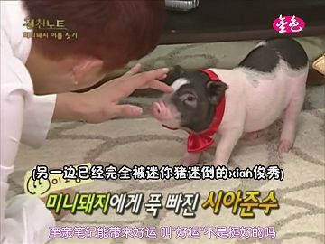 可愛的小豬讓俊秀愛不釋手,整個趴在地上摸摸小豬 ~^_^~