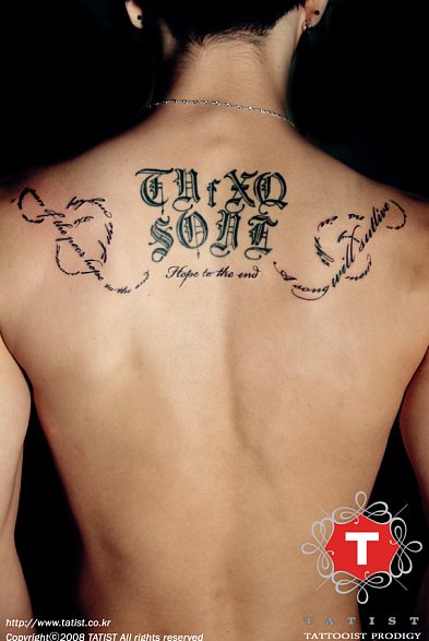 這兩張圖應該是剛刺吧....字還浮凸著,有點紅腫的感覺,雖然覺得這個刺青很漂亮,但是刺青會上癮耶....很可怕!再這樣下去,越刺越多變成穿衣服怎麼辦~XD 看過很多日本樂手從穿短袖變成長袖、到最後連上衣都穿上了@_@