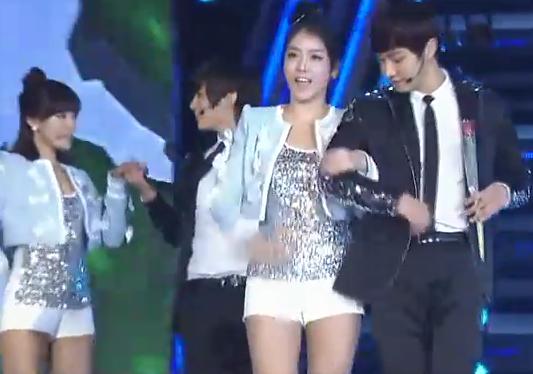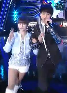 唱完 Soom 後,接下來要換舞台,和 T-ara 合唱 Beautiful